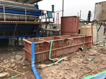 運行情況:該項目使用YB250-30液壓柱塞泥漿泵5臺,XYZG300-125壓濾機5臺,日處理打樁污水污泥2000噸,打樁污水污泥經(jīng)過振動篩過濾將5毫米以上碎石和雜質(zhì)除掉,然后加藥沉淀,沉淀后污泥經(jīng)過柱塞泥漿泵進入壓濾機過濾,過濾壓力10公斤經(jīng)過30分鐘過濾,濾餅含水率達到20-25%左右,泥餅成型即可卸料。